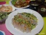 おととい同じマンションの仲良しさん宅から鯛をもらいましたif" alt="鯛か金魚" border="0" />旦那さんが千葉に釣りに行くとは聞いていたけど、まさか我が家にも鯛が届くとはビックリ1日おいて鯛のカルパッチョを作りました 鯛をおろしたのは実は初めて一応、家に鱗取りはあるので何とか頑張りましたきゅうりも同じマンションの別の仲良しさん宅から「形は悪いんだけど...」と16本ももらったので、鯛ときゅうりのコラボですサムジャン 小さじ2しょうゆ 小さじ1酢 小さじ2オリゴ糖シロップ 小さじ1ごま油 大さじ1白ごま 小さじ2鯛と千切りにしたきゅうりを交互に並べ、サムジャンを使ったたれをかけて旦那とさっぱり美味しく食べました子供用には鯛のつみれ汁鯛で作るなんてちょっと贅沢 サムジャンで鯛のカルパッチョ 鯛のつみれ汁 鶏のからあげ きゅうりのぬか漬け 桃なーちゃん、鯛のつみれとっても美味しそうに食べていましたもらった鯛はこんなに立派でした 本格韓国調味料★チョンジョンウォン ファンサイト参加中子育てスタイルに参加中♪スンチャン サムジャン 200g 韓国食品 韓国料理 韓国食材 韓国価格:210円(税込、送料別)