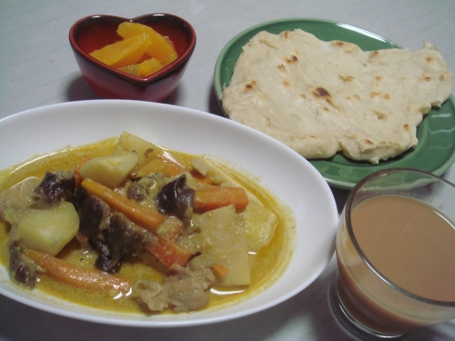 イエローカレーはココナッツミルクとスパイスをあわせてペースト状にしたものを溶かして、チャツネを入れて煮込むだけ★ 具材は鶏肉と、にんじん、なす、たけのこ、じゃがいも 野菜は根菜ならなんでも合うのでその日の気分で色々入れます★