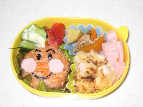 息子が残さず食べられるようにアンパンマン弁当にしましたそのおかげで綺麗に全部食べて帰ってきました