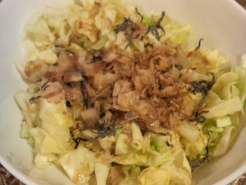 母から教えてもらったレンジでチンの簡単キャベツサラダです!なんかテレビでやっていたそうでザクザクに切ったキャベツをお皿に盛り、レンジで1分くらい(量にもよりますが)チン!半分蒸された状態のキャベツに塩昆布とごま油をサッとふりかけ、鰹節をのせて完成!!!とっても簡単で我が家は頻繁に作りますごま …続きを見る
