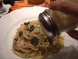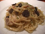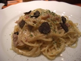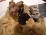 昨日TBSに行った帰りに、銀座の生パスタのお店、銀座パスフェさんが 赤坂にも新しくオープンしたという事で、もちもち生パスタをいただきに 行って来ました 赤坂パスフェ場所は、千代田線赤坂駅2番出口すぐの風月堂地下1Fです 最近、クリーム系やカルボナーラと、クリームが続いているので、 絶対トマト系にしようと思って ハンバーグ&ナポリタンがあったからそれにしようとして、 いちお、メニューを上から全部見てみたら 世界三大珍味トリュフと イベリコ豚のカルボナーラっていうのがあって もう、即決です(笑) サラダ&ドリンクのセットもつけました ドレッシングは洋風と和風が選べるそうで、洋風にしました パスタ 麺は通常140gをサービスで160gの大盛りにも出来るそう 私は大食いなので、160gで 粉チーズと黒コショウをたっぷりかけて、いただきます トリュフ、3年ぶりくらいにいただきましたが、おいしーーーい 香りが強いです 乾麺と違って生パスタはすっごくもちもちしてます これがまた、カルボナーラに合うんですね 国際グルメフェアで金賞を取ったこの生パスタ シェフの岸野さんは、パスタの本場イタリアで修行し、数々の賞を受賞してるそう お店の生パスタは、日本に3台しかない、押し出し式のパスタマシーンを 使っているそうです HPに詳しくこだわりが書かれているので、是非是非チェックしてくださいね 赤坂パスフェ 食後セットのアップルティー デザートもあったんだけど、おなかいっぱいになってしまったので、 デザートはまた次回、かなデザートも種類たくさんありましたよ トリュフとイベリコのカルボナーラ、とってもおいしかったです 次はナポリタンハンバーグかな 和風の生パスタも気になります ごちそうさまでした 赤坂パスフェ 生パスタ専門店 銀座パスフェファンサイト応援中 続きを見る ['close']