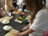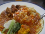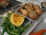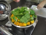 今日は代休取って、原宿にある、 m’s organic cooking studioさんの料理教室に参加して来ました JR原宿駅から徒歩8分って書いてあったんだけど、私、方向音痴なので、 すっごい遠回りして、20分くらいかかりちょっと迷い ギリギリの到着でした 今日はマクロビオティックの料理を作りました マクロビオティックとは 「体と心をコントロールする食事法」 詳しくはをチェックしてください 先生の簡単な説明の後、調理スタートです 今日のメニューは、 玄米ごはん トマトカレー 豆腐とお麩のティラミス まず、玄米を圧力釜で炊きます 今日は12名いたので、役割分担で 私はカレーの野菜切り(写真、右です)玉葱のみじん切り、 がんばってます 包丁がとてもよく切れて 切りやすかったです その後、にんにくもカット先日買ったエプロンしてます カレー炒めた玉葱、にんじん、生姜、にんにくをじっくり炒めます カレーを煮ている間に、もう一品 なんとっ 大豆のからあげ を作りました 衣をつけて、180℃の油で揚げます 鶏肉の代わりに、大豆を使っているので、とってもヘルシーです (これは私が揚げてます) 最初に炊いた玄米炊き上がりました じゃんカレーの出来上がりです ルーは辛口と甘口の2種作りました 両方食べてみたかったので、手前が辛口で、奥が甘口です 先程蒸した、かぶとかぼちゃ 大豆のから揚げ それでは、いただきまーーーす ちょっとカレーが辛いようなでも、辛いの好きなので、おいしかったです トマトの酸味も効いてます ティラミスお麩とお豆腐の味がしましたが、 ちゃんとティラミスです お土産に、今日使った、カレー粉と、ドライフルーツをいただきました 料理教室に参加したの、初めてで とっても楽しかったですまた参加したいなぁ ありがとうございました オーガニック専門オーガニックスペースファンサイト応援中 続きを見る ['close']