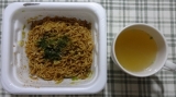東洋水産 HP やきそば弁当 エクスプレス 105円 発売日:2016年2月1日 販売エリア:北海道 期間限定 ニュースリリース HPエネルギー 527 kcal 、食塩相当量 56gHPより熱湯1分で湯戻りする麺に、3種のソースを使用し、イカの旨味が利いた調理感のある濃い目のソース焼そばキャベツ、イカ、あおさと紅生姜のふりかけ戻し湯で作る中華スープ付きフタ(作り方)中 1分 続きを見る ['close']