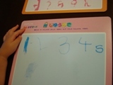 近頃、ひらがなを書き始めた娘に丁度良いのでは? と、応募したモニターに当選し、品物が届いた! “水でおけいこ!もじかずボード” 付属の水ペンを使って、ひらがなカタカナすうじの練習ができる おもちゃの“スイスイおえかき”と同じ仕組み 早速、やってみよう! 水ペンを用意して、まずは、身近な“ひらがな”から… なぜか?な行から 水ペンなので、筆圧がなくても、上手に書けるところが良い 書いたことのない文字が、いっぱい! ひとまず書き順は無視して、書きたいように… ひらがなの次は、“すうじ” 普段、“すうじ”をあまり書かないだけど、できるかな? ボードの裏面は、フリーハンドでの練習 9だけ反対向き♪大きさはマチマチだけど、ちゃんと分かるよ! しばらくすると、、、 あら、お絵かき! まっ、しょうがないか… 水が乾くと元に戻るので、何度でも練習できる カタカナボードもあるから、またやってみようね! 続きを見る ['close']