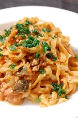 株式会社讃匠(さぬきうどんの亀城庵)ファンサイト応援中その後、侍刃守田(サムライパスタ)で2種類のパスタを作りました第2弾は「鮭の味噌クリームソース」鮭、きのこ類、タマネギを炒めてそこに予め混ぜておいた生クリーム(大23)味噌(大1)を加える茹で上がったパスタをソースに絡め皿に盛るドライディルを振って完成手前味噌ですけど、美味し♪どて煮パスタの後に食べたからあっさりに感じました(笑)味噌とクリーム味噌って何でも合う第3弾は「味噌ボロネーゼ」作り置きしておいたボロネーゼ(トマトのミートソース)に味噌(大1)、生クリーム(大12)を加える茹で上がったパスタをソースに絡め皿に盛る荒く刻んだパセリを振って完成これもかなりイケル!!味噌とトマトソースも相性いいです味噌がほどよいコクを出してくれてる気がしますどて煮パスタと並んで気に入りました大好きな生パスタがお家でもこんなに簡単に楽しめるなんて嬉しい発見しかも手軽だしパスタのレパートリーも増えて、とてもいい経験になりましたまた作ろっとパスタを自分で打つのもいいかも 続きを見る ['close']