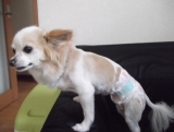 犬用紙おむつモニター当たりましたユニチャームペット用マナーウェア 女の子用早速ももちゃんに着用してもらいましたこの写真を撮った直後、即座に、ちわがおしっこをしていた所に片足を上げて上書きマーキング(注女の子です)ぶっちゃけ毎回こういう風にトイレでおしっこしてくれるなら苦労しないのにorz足の辺りがゆるいからちょっと心配してたのですが、ギャザーのおかげで横漏れも無く一安心現在使用中のオムツよりかなりゆったりめなのですが、漏れないからいい感じです歩くときに太ももあたりが締め付けられないから、歩き方もオムツなしの時みたいに自然に見えます(今のは横漏れや後ろ漏れに気を使うと、どうしてもキツめにつけなければならないのです)締め付けられない=足の付け根が赤くなる事もないなのでそういう意味でも良かったです寝るときは用心の為、上からオムツカバーを着けています…寝相が悪いんで…しかも何故か仰向けでそれはそれは激しくのたうちまわるから…あれもマーキングの一種らしいですが(女の子です)ではお出かけ時のお洋服着用との相性は?この写真ではお座り状態なので分かりにくいですが、かぼちゃパンツっぽくてなかなか可愛いv動きも制限されにくいから嫌がらないで装着させてくださいませ、女王様値段的には今使ってるやつ3つ分の数と価格なんで金額的にも変わりはないし使い切ってから家族で相談してみようかと思います問題は近辺ではデパートにもホームセンダーにもSCにもまだ扱ってるお店が無いということでしょうか基本的にオムツはネット購入なんでその辺はあまり問題ないですがあと、今は大丈夫なんだけど、おとめちゃん(ももちゃんよりふた周りほど小さい)には大きすぎて使えないなぁ2kg未満の子にも対応したサイズがいつか出てくれたらなぁ