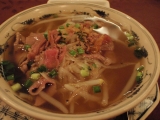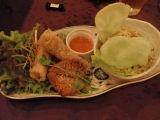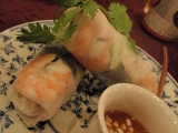 モニプラさんの企画でNha VietNam(ニャーベトナム) のスタイリッシュコースをご馳走になりました 近所に行きつけのネイルサロンがあるので、同じサロンに通うYさまにも付き合って頂きました まずはベトナムビールで乾杯 パンダはサイゴンスペシャルを頼みました 初めのお料理は小海老と豚肉、野菜の生春巻き ソースが美味しい生春巻きでした 青いパパイヤのサラダと温前菜二種盛り合わせ 温前菜は海鮮入り綱上の揚げ春巻き、海老トースト 結構ボリュームがありました メインは二種類から選択できます 海老のライスペーパー巻き揚げ、スイートチリソースと豚肉と野菜のオイスターソース炒め パンダは豚肉にしました フォーとご飯は5種類から選べます 鶏肉、牛肉、ピリ辛豚肉、魚介のフォーと蓮の実入りの炊き込みご飯 本日は牛肉のフォーにしました ランチでこのお店を利用しているYさま曰く、お昼はもっとサイズが大きいフォーらしいんだけど、十分これでもボリュームがありました 麺は柔らかめ 牛肉のフォーは初めて 全体的にいいお味のお店でした★ お店の雰囲気や置いてある小物や店員さんのお洋服も可愛いし、女の子同士の食事にはピッタリなお店だなって思います 置いてあるワインも良心的なお値段でした モニプラさん、ニャー・ベトナムの皆様、今回は楽しい企画を有難うございました またベトナム料理が食べたくなったら行きますね ごちそうさまでした★ 続きを見る