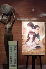 シアタークリエ12月公演舞台 一条ゆかり原作『プライド』製作発表会に、招待されました♪東宝(株)演劇部2000人の応募から、140名が招待されましたρ(^^ )ノ チャンミを選んでくださり、ありがとうρ(^^ )ノ 前から、生劇に興味があったし、昔昔子供の頃「りぼん」で読んでいた漫画家「一条ゆかり」先生の原作だったのでちょっとわくわくして参加日本の芸能界には、めちゃうといので、まったくしらない役者さんたちだったけどいゃ素敵でした近くでみれたのも、うれしい韓国の俳優さんは、作品に命をふきかかけるように、役になりきってコメントもいつも心に響くけど日本の俳優さんのコメントは、あじけないなぁと思っていたけどそんなことありませんでした期待、みたくなりましたこれから台本ができるまでの役作りなどすべてカットなしで、製作発表会は、俳優さんたちの努力が伝わり楽しみです会場は、こんな感じそれでは記者会見の内容を♪チャンミが一番伝えたいところを♪まずはとっても会いたかった漫画家の「一条ゆかり」の先生この作品をやるにあたってテレビの話もきたけど、昼メロだったのとテレビでは、できない豪華さを演劇だったら、表現できるとおもってスケール大きさ、歌をきかせる・・とび肌がたつ感動を生で感じてほしいとのことです ★4人しかでないのは、けちとおもった(笑)オペラをまったくしらかったので、めちゃめちゃ勉強したそうです本格的な漫画の世界を、肌でかんじられそうです★ミュージカルスターが、ミュージカルでない作品を、歌を通じて演じるのも楽しみ脚本:大石 静先生大石先生は、オリジナルにこだわって仕事をしてきたけど原作者の立体的な心 天使・悪魔弱いところ・強いところなどはかりできない奥深さを見事に表現できている漫画なので原作者の哲学に共感できて、仕事をうけたそうです一つものを求めて、無様で、必死に生きる人間の美しさを描きたい演出:寺秀臣先生一条先生にいわれたマリアンアネットのようにゴージャース感をだしたい4人のみで、ゴージャースを表現一人の場面でも、満足いくように、一人・一人をはっきりと表すそうですちょっとわくわくしませんかそれでは、たった4人しかでない役者さんの意気込みを♪池之端蘭丸役佐々木喜英プライド全巻を読んで、4人の考え方成長に共感蘭丸の気持ちの変化大人になったなぁという所を表現したいピアノを練習します女装が楽しみ女らしいしぐさも勉強中きらきらしていて、かわいかったですρ(^^ )ノ チャンミの感想いらないって(><)麻見史緒役笹本玲奈しおりのもっているはかなさ・守ってあげたい部分もだしたい一条先生に先ほどだめだしされてもっとどうどうと、一人でたっていても優雅に豪華にとマナー講座に通うかと悩むほど、お嬢様のスタイルは、かけ離れているので頑張りたい気品あるお嬢様をきっと演じます緑川 萌役新妻聖子ショートヘアーがとっても、似合っているけどカツラだってロングで有名なミュージカルスターさんだそうですもえちゃんは、凄いことをする自分でも、まわりにもいない役なので、違う世界で楽しみです普通の人であり、鬼のような人なので、もえの美しいもの人間ととしての美しさを演じたいもえの苦しみ喜びを客席の皆様と一緒に共感できたらいいです役者として、別人として演じる魅力ある役なので、わくわくしてます神野 隆役鈴木一真良く・・テレビにも出ている俳優さんらしいごめんなさい韓国ドラマしかみないので一番漫画のキャラそっくりでした一条先生も大喜び髪型は、かなり時間がかかったそうですすべてを手に入れた男仕事・プライベートでも友達にしたくないキャラでしたが、静かで、冷血、実は弱い男なので、一緒に飲みに行ってあげたいと今は、思ってます最初は、たみさんが、誰がやるか楽しみだったのに4人かよと驚いた4人のキャラの魅力が伝わり、とっても楽しみです脚本家の大石 静先生が、一番印象に残っているキャラで、3人をふりまわしているようで、実は、振り回されいた、そして冷血なのに実は弱かったという心が成長していく神野の魅力を描きたいとマスコミのインタービューも面白かったです本人たち写せないのが、残念記者気分で、楽しいかったですρ(^^ )ノありがとうρ(^^ )ノ 今度は、韓国映画などの製作発表会招待してください誠実にプログにまとめますいや興奮して冷静に覚えられないかも(><)ここが、話題有名ミュージカルスターが同時でるのは、凄いこと今まで、同じ役を別々に演じていた二人が、ライバルとして、バトルして、成長してく物語♪舞台の見所絶対に生でしかあじわえないここを感じてほしい麻見史緒役笹本玲奈 緑川 萌役新妻聖子 の二人の2代ミュージカルスターが歌うシーンお互い足りないところを補いながら、歌ってそのとき科学反応がおきて二人の歌に、飛びはだたつような感動を感じてほしい今できあがった2曲のメドレーは、いい曲で原作イメージドンピシャ早く、歌詞
