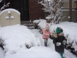 今日は大雪 !OLの頃はブルーでしたが、今は家にいる身素直に嬉しく、遊ぶ事に 15センチは積もっています 玄関の前の通路はレンガで滑りやすいので