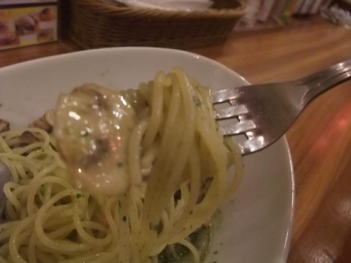 うん、前回同様、この生パスタは、かなり衝撃的ですなんというか、コシのあるうどんのようなモチモチ感なんですよね生パスタも他店でも食べてきましたが、こういうのは他にはないですねうどんっぽいモチモチ感のパスタが、スパゲッティにあうのかどうかはよくわかりませんが、うどんに慣れた日本人には好まれそうな気がしますね