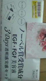 セルビックのファンブロガーサイトファンサイト応援中 モニプラさんで初モニターです セルビックさんのEGF/FGF美容液 3日分のサンプルが届いたので、さっそく使ってみました EGFとは、Epidermal Growth Factor(上皮成長因子)の略で、もともと人間が持っているタンパク質の一種で、表皮細胞の成長と増殖を促します FGFとは、Fibroblast Grouwth Factor(線維芽細胞増殖因子)の略で、真皮にあるコラーゲン線維を作る線維芽細胞の成長と増殖を促します EGFもFGFも、加齢とともに減少します 美容業界の製品開発はすごいなあ 私が10年くらい前、初めて研究の手ほどきを受けて論文を書いたとき、題材はVEGF(血管増殖因子)で、当時でも比較的新しいものでした 大学院在学中も、同じ研究室で、外科の同期は、EGFとFGFを用いた癌の研究をしていました そういった材料が、化粧品という形ですぐに市販されているのにまず驚きました このセルビックの美容液中のEGF,FGF成分は、1997年にアメリカで特許を取得しているそうです 夜、洗顔後の清潔な肌にEGF美容液とFGF美容液を塗布し、そのあといつものお手入れ、朝は洗顔後EGE美容液、それからいつものお手入れをします 普段あまり色々塗っていないので、夜はこの美容液だけ、朝は美容液にローション、日焼け止めを使って3日間 使用感は、意外にもとろみが全くなく、さっぱりしていたこと 保湿はちゃんとしたほうがよさそうです でも、これだけ、さらっと自然に使えるなら、これからの季節も気持ちよく使用できそう 3日間の効果ですが、実はこのところ夏バテか、体調が思わしくないのですが、お肌はつやがあってつるつるしている気がします 実際はりが出てくるのを実感するにはお肌のターンオーバーの28日間は使ってみたいところですが、3日間でもなんとなく効果が感じられたと思います 初モニター、たのしく終了しました モニプラ様、セルビック様、ありがとうございました 美肌づくりのプロ、スキンケアスタイリストの仕事ぶりブログ 続きを見る