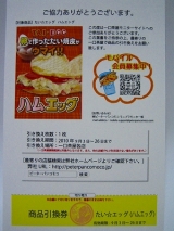 【たいエッグ】ハムエッグ モニター報告 2010年8月27日に届いた物です 【モニプラさん】の「応募するだけ♪」に応募したものです ピーターパンコモコさんから「ハムエッグ」の商品引換券が送られてきました 近所の一口茶屋さんの店舗で商品と引き換えるシステムです またまたクルマで20分かけて引換えてきました 今回もきれいに納まっている、「ハムエッグ」です 1個¥200です 裏側は卵で作ったたい焼きの皮になっています キャベツ、マヨネーズ、チーズ、ハムが入っています ハムが確認出来なかったので解剖したら、グチャグチャになってしまいますた 赤いのがハムです 味は「ツナマヨエッグ」に似ていますね ツナとハムの違いだけで中身はいっしょですからね ハムの存在感もしっかり感じられます もう少しハムが厚切りだとさらに良いのですが 相変わらずボリュームもあるので、お腹に溜まります 第1弾復活で「テリヤキハンバーグ」もあったのですが、 残念ながらはずれてしまいました(´・ω・`)ショボーン 一番食べてみたかったんだけどなw ピーターパンコモコさん、ありがとうございました 一口茶屋ファンサイト応援中 続きを見る ['close']