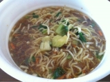 「サンマーメン」と最初に聞いてイメージしたのは、ニシンそばのような形 ラーメンの上に焼サンマかな?とイメージしていましたが、実態はかなり違いました 「生碼麺(サンマー麺)」は、横浜の地ラーメンだそうです お湯を入れて4分でできあがり 醤油ベースのとろみがかったスープは、オイスターの風味もあり中華風 チンゲンサイやモヤシなど、カップラーメンにしては野菜が多めなのはうれしいです ノンフライ麺のため、このサイズで310kcalというのは、カロリー控えめ 細麺には、しっかりとしたコシがあります ちょっとアレンジして、目玉焼きもトッピング ヘルシーだけど、味はしっかり目 そんなサンマーメンでした 続きを見る