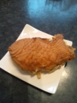 最初はお好み焼きっぽいなぁと思ったけど、ハンバーグがはさんであるとこ食べたらめちゃ照り焼きで