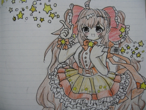 アイドル風にかいてみました トゥインテールが大好きなんです 持っているのはマイクです