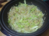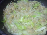 キャベツ&もやし等…をトッピングして、具だくさんもんじゃにしたよん♪