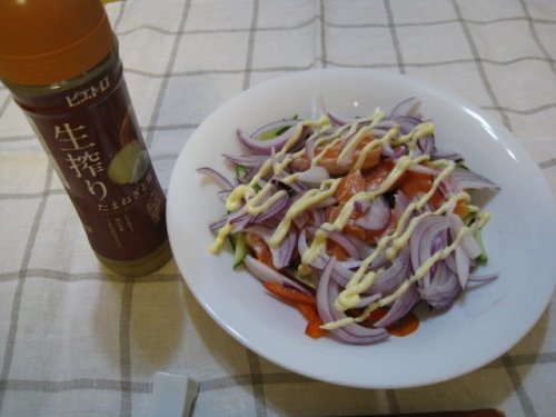 邪道と言われるかもしれないですが、お寿司屋さんに行くと必ずオニオンサーモンを頼みます 家でも真似て作っています♪ ピエトロの生搾りドレッシングはとっても美味しいです♪ オレンジ色のフレンチドレッシングと2つ常備しています