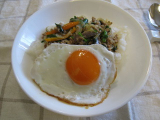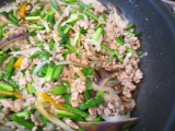 梅干し、かつお節、いりごま、みりんを入れて和風に仕上げました!!