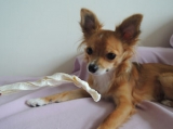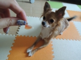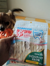 少し前のことになりますが、あくびをしたチワの奥歯に黒いものが……噛みたがりのチワワン以前にぬいぐるみの刺繍部分を噛み噛みしてちぎった糸が歯に絡みついていたことがあったので、また糸を付けてるのかな? と思ったけれど、どうやら違うよう奥歯のギザギザに添って黒くなってる歯磨き習慣を付けたほうがいいのはわかっていましたが、嫌がるし去勢手術をしたときに、まあ、あの状況で嫌がることをする気になれなかったし、その後、チワが荒れた時期もあったのでサボり気味だったんですよね(^^;嫌がるチワを押さえつけて、慌てて歯ブラシでゴシゴシ少し薄くなったような……?何日か続けたら、黒い汚れが取れてホッ歯磨きで取れる汚れだったから良かったものの、歯石が溜まったらとるのに麻酔が必要ですからね普段のお手入れ、やっぱ大事ですよね歯磨きジェルの味は好きなようで、ペロペロ舐めますが、なかなか口を開けて歯ブラシを迎え入れてくれない(´ω`)それでも少しずつでも毎日やっていれば、いつかは馴れてくれるかもと期待して歯磨きしてますただ、なだめすかしてもすぐに嫌がりますから、歯ブラシ以外の方法も併用しましょう遊びながら歯磨き効果が期待できるロープやぬいぐるみの類を与えてみましたがぶちぶち噛みちぎってしまい、誤飲の危険が高いのでボツ(>_ 続きを見る