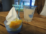 風は強いけれど、お天気だったこの日、お台場をお散歩♪ 大道芸やってました デックス東京ビーチ4Fにあるyogorino(ヨゴリーノ)へyogorino(ヨゴリーノ)は1993年イタリアのヴェローナにオープンしたお店店名でもあるヨゴリーノは、ヨーグルトフレーバーのジェラートです創業者のエンリコバルボが「ヘルシー」「安心安全」というコンセプトを元に作ったヨゴリーノは一般的なアイスクリームに比べてカロリーが約2分の1、脂肪分が約5分の1なんだとかソフトクリームのような食感が特徴で、イタリア国内に約200店舗、世界32カ国に展開しているんだそう私、カロリーとか脂肪とかまぁっっっっったく気にしていませんが、ジェラートもヨーグルトも好きなので、 食べてみたかったのよっ♪プレーンのヨゴリーノにマンゴートッピングダンナは杏仁ミルクのタピオカドリンク 受け取った瞬間から、ヨーグルトの香りがしますo(^o^)oウキウキでは、いっただきます♪ ふむ口当たりはなめらか(人´∀`)。・゚いまは懐かしいデイリークイーンのソフトクリームくらいなめらかな舌触りです だけど ………… あまっ(;´д`) ノ のっぺりとした単調な甘さで、喉が渇く……orz甘さを控えて、もっとヨーグルトの爽やかな酸味が欲しい!!!脂肪分が少ないと、甘みが立ってくるのかしら?それとも、使用している甘味料が私の口に合わないのかなぁ?トッピングメニューが豊富にあるんだから、プレーンはサッパリさせておいて、トッピングで味の変化を楽しむくらいでいいと思うんだけどなぁマンゴーよりもキウイとかグレープフルーツとかのトッピングにしておけば、もう少し食べやすかったかなぁ?それにしても、キャラメルシロップとか煉乳を選んだら、どれだけ甘々になるんだろう?(^◇^;)ま、外国のデザートだから、甘いのは仕方がないのか ホームページを見たら〈甘くて濃厚でヘルシーな「ヨゴリーノ」〉とあったから、甘いと不満に思う私が間違っていたか……スマヌf^_^; ヨゴリーノファンサイトファンサイト参加中 私、大道芸って好きなんです♪なので目を輝かせて見てました♪お目々キラキラでしょwデックスに紙でできたこんなメガネがあったので、かけてみましたwwどこかに出かけるときはこれを持っていけば、顔にモザイクをかけずにすむ……かな?(^^; 続きを見る ['close']