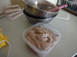 ココアあいすくりーむ 2010年05月21日 (金) | 編集 | 今日は、あっついですね!こんな暑い日のおやつはアイスに決定です♪でも、我が家でアイスを人数分購入しようと思うと、500円かかります(殿は滅多に食べない)少しでもコストを抑えたいぱぴかーさんは、100均のホイップクリームでアイスを作ります子供の好きなチョコ味(ココアだけどね)材料は3つ! ホイップクリーム200ml ココア大さじ2 砂糖大さじ4〜5(お好みで)作り方は、2ステップ! ?材料をすべてボウルに入れ、ハンドミキサーで混ぜる (腕力に自身のある方は、泡だて器でまぜても) ?タッパーなどの容器に入れて冷凍庫で固める我が家は倍量で作りますこのタッパーは、104ℓ入るやつです出来上がり〜♪簡単でいいですね〜♪チビ達のをよそっても、まだまだ残ってます♪お好みで、チョコチップを入れたり、オレオを砕いて入れたりしてもおいしいです♪食べるときに、砕いたアーモンドとチョコシロップをかけてもおいしいです♪確実に太りますけどね( ̄ー ̄)ニヤリッよろしくお願いし… 続きを見る ['close']