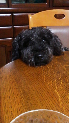 食事をしていると、いつもこうやっておねだりのポーズをしてきます^^ ワンともいわずにずっとこの姿でじっとみつめられると ついついひとくちやっちゃうんだよな^^ 人の心をよくわかってる賢いわんこなのかしらwww