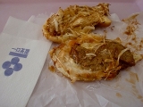 いつも応募している「モニプラプレゼント」の【たいエッグ】テリヤキハンバーグ試食券が当選しました、 近所に取扱店がなくてやっと見つけて行って来ました、「一口茶屋」、ホームセンターのフードコートにありました、 焼いているところを見たかったんですけれど、残念ながら既に焼いてあって紙に包んで有りました、開けてみると鯛焼きが、頭の中ではアンコの入った鯛焼きですよね、 興味津々、中を開けてみると、アンコの代わりに薄焼きのハンバーグとキャベツが入っていました、味付けは甘いテリヤキソース、鯛焼きの衣は卵で出来ていました、不思議な食感、 1個200円、私にはちょっと量的に物足りませんでしたけれど、味は良かったですよ、 ちょっと足りないので同じ会社でやっているお店で「ペッパーランチ」というビーフとバターライスを食べました、 http//moniplajp/bl_rd/iid8697487014c68bf5dda772/m4bc7e954e3e38/k1/s0/ 続きを見る ['close']