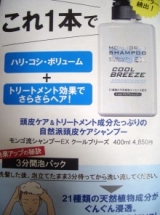 最近家族の頭の匂いが気になるので爽快頭皮ケア『モンゴ流シャンプーEXクールブリーズ』を10日間試してもらいました「モンゴ流シャンプーEX クールブリーズ」は、天然メントール配合で、クールな使い心地を追求したスカルプシャンプーらしい( ´ ▽ ` )ノ★★特徴★★★頭皮に優しいアミノ酸系の洗浄成分が毛穴に詰まった汚れや酸化した 皮脂を取り除く!★頭皮環境を整えるために、21種類の天然植物成分が頭皮や髪に多角的に働きかけ、 保湿保護!!袋を開けると、緑の液体が出てきてビックリ!頭皮でシャンプーして3分ほどしたら洗い流すのですが、だんだんスースーしてくるので、最初はビックリしたそうです!洗い流すときれいさっぱり爽快で気に行ったみたい( ´ ▽ ` )ノこれから夏にかけて、汗を沢山かくし、良い感じのシャンプーがみつかって、嬉しそうでした★ニオイもあまり感じなくなって、良い感じ◎試してみて、よかったです( ´ ▽ ` )ノ★アルファウェイファンサイトファンサイト参加中
