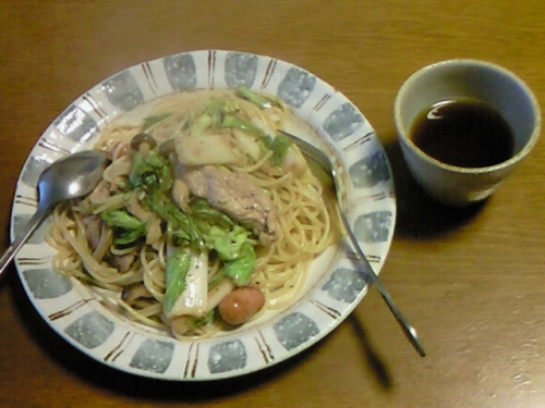きのこ長ネギにらレタスやお肉(ベーコンやソーセージ、鶏肉)など、冷蔵庫にあるあまりものを塩コショウで軽く炒め、その後、適量の水とみりん、めんつゆで味を調え、茹でたパスタを加えた、超簡単和風パスタです 冷蔵庫の余り野菜で短時間に簡単、しかも美味しいので、時間がない、疲れているけど、 きちんとしたものが食べたい!という時に作っています 母親も大好きなレシピです♪ 続きを見る ['close']