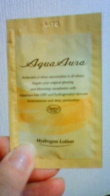 さてさて 今回は㈱ジャパンゲートウェイさんのアクアオーラローションのモニターをさせていただきました このアクアローラローションは水素の入った化粧水なんです なんでも水素はトラブルや老化防止成分として医学会でも注目されているのだとか 今回は一週間分のお試しということで、内容もたっぷり (すみません、全体写真撮り忘れました) 1回分がこちら 試供品とかでよくもらうサイズですね これが1回分×14袋のセットでした これね、試供品だから使いきりサイズのパックに入ってると思うでしょ 現品はボトルに入ってると思うでしょ それがね違うんですよ 現品はこのパックが60包入★\4,800で売られている商品なんですよ 詳しくはこちら → アクアオーラ 水素は空気と接すると、どんどん抜けていってしまう性質なので、 ボトルの容器に入れてしまうとどうしても効果が消えていってしまうんですよね なので、こうして1回分ずつパックにしているんだって すごいよね で、使い方なのですが説明書には、 洗顔 ↓ アクアオーラローション ↓ お手持ちの化粧水 ↓ 乳液やクリーム の順で使うように指示が なんでも、アクアオーラローションを初めて使うときは特に浸透がいいのでプレ化粧水として使い、 使い続けると肌が改善されるので通常の化粧水として使えるようになるそうです プレ化粧水とか何それと思いつつ、 とりあえず使ってみよーと使ってみたらビックリ 浸透力がハンパない 私、こういう風に個包装された化粧水って 1回で使い切ったことないんですよね 絶対に途中で これ以上、吸い取れません みたいになるんですよ、肌が だけどこのオーラローションは全然そんなことなくて 全部の量がキレイになくなりました 足りないのかな?もっと付けたいって思うくらい、浸透力がすごかったです 使った後は、肌がサラっとしてなんだか毛穴がしまるような感じがありました その後いつもの化粧水と乳液を付けて完了 なんだか感激でした 使い始めて最初の2回はこうやってプレ化粧水として使ったんだけど、 3回目からは浸透力もそんなに驚くほどではなくなった(肌が水分を欲している感じがなくなった)ので、 普通の化粧水として使いました 1週間使ってみて、小鼻の毛穴のつまりは前より解消された感じ 心なしか、透明感も出てきたような? うん いつもの化粧水に戻したときがちょっと怖いかも 愛されビューティー&コスメファンサイト応援中 続きを見る