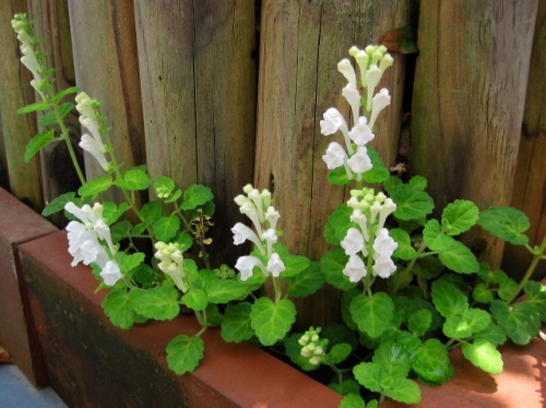 こぼれ種でふえたタツナミソウです 場所はバルコニーに作った花壇 なんだか林の中に迷い込んだ気分 木漏れ日を浴びうつむく姿が愛おしいです