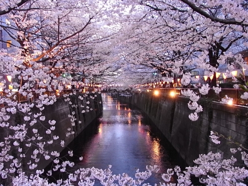 3,8キロの目黒川沿いにおよそ800本の桜が咲き誇っています川面に映る春の色は素敵です