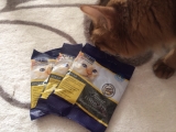 少し前から今まで食べていたカリカリを拒否するようになり 食いつきの良いフードを食べさせながら、良質なフード探しをしています どちらかというとお肉系よりも、お魚系が好きなようなのでプレミアムフードで気になっていたこちらをお試しさせて頂きました ※フィッシュ4キャット※ フィッシュ4キャットは穀物不使用の無添加キャットフード 鮮魚をふんだんに使用していて オメガ3脂肪酸アミノ酸ミネラルビタミン豊富な 海藻が配合されています カリカリの粒は三角形で、1センチくらいの大き目サイズ サーモンサバイワシの3種類を(愛猫)が食べ比べ 袋を開けた瞬間に、ふんわりと焼き魚のような香りが漂い 待ちきれない様子で、ものすごい催促をされ お皿を置いた瞬間にガツガツと食べ始めました どのお味も気に入ったようで、まんべんなく食べていましたが 特にサーモン味が好きなのか、食べ終わった後のお皿までペロペロ 本ニャン大満足のお味だったようです 無添加で安心してあげられる良質なフードなので ローテーションの1つに加えたいなと思いました ウェットフードも出ているみたいなので そちらも是非試してみようとおもいます グッドスマイルインターナショナルファンサイト参加中 いつも訪問頂きありがとうございます あしあと代わりにポチっとして頂けると嬉しいです にほんブログ村 続きを見る