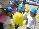 先週の日曜日は地区民運動会でした昨年から保育所に入所したコウは今回2回目の参加♪保育所の子どもたちは、親子リズムとかけっこのみ今年はイチも参加です人の多さに圧倒されていたイチそりゃそうよね2歳児、こんな人の多いところに行くのめったにないもんねコウは、昨年とはうって変わって友だちとはしゃいで楽しそう♪これだけでも成長が感じられますゆるーりと公園に行きましょうダンスが終わり、かけっこコウはこけそうになりながらも頑張って走っていました前日から「俺は二番になる」としきりに言っていて本当に二番になりました足が速くてどうしても抜かせない子がいて、だから二番でいいそうですなんかこういう状況把握は大人的というかなんというか(苦笑)でも、最後まで一生懸命走っていたので良かったですわイチはといえば、なんか手先をもぞもぞさせていて、一向に走ってこないワタシがゴール先で手を振っているのに気づかずもぞもぞ最後は先生に背中を押され、歩いてやってきました何をしていたんだろうでもわかりました(笑)親子リズムはばあちゃんと踊ったイチその時からずっと鼻の穴に指をつっこんでほじほじしていて全く踊らなかったらしいおそらく、手についた鼻くそをかけっこの間中とろうとしていたんでしょう、推測イチらしいわでも、最後には風船を中学生のお兄ちゃんからもらってご満悦♪そして消防団のパパと、、、お昼は、今回は、、、と弁当持参♪昨年は、用意していかず、コンビ二に走ったからね最近はまっているキョウリュウジャー(笑)「肉ないやん!」とパパキョウリュウジャー勢ぞろいで手一杯でした楽しい1日でした暑かったモニプラさんより【ミキハウス】UVミルク(子供用日焼けどめ) 5名さまミキハウスからも日焼け止めが出てるんですね本当、日差しが強いと心配になります特に子どものやわ肌昔の紫外線とは全然違うみたいですしね毎年、日焼け止めつけていますが、日焼け止め効果は高いのに石鹸だけで落ちるみたいですよ!プールも始まるしウォータープルーフっていうのもいいですね 続きを見る