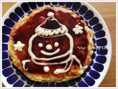 娘がサンタさんにお手紙を書いていたので、お好み焼きにも雪だるまサンタを描きました 絵が苦手な私ですが、付属のマヨネーズが描きやすくて思っていたよりもかわいくかけたんじゃないかな♪