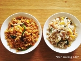 マルハニチロさんのアクリブランドから、『石焼風ビビンバ炒飯』と『石焼風塩だれ豚とろカルビめし』を試食させていただきました石焼き風米飯対決ですどちらもレンジに