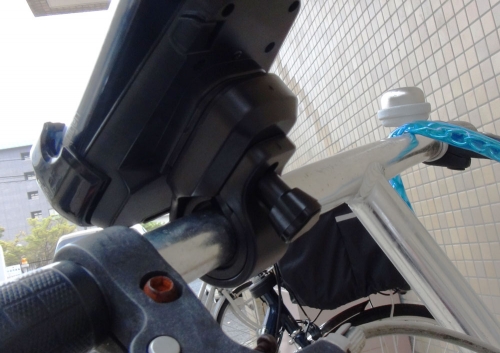 しっかりした取付けのできる自転車用スマートフォンホルダーです 1.自転車のハンドルバーにしっかり取付け 樹脂製スペーサーと二種類のラバーパッドで色々な太さのハンドルに取付け 続きを見る