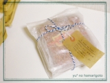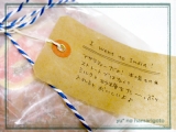 静岡、昨日は5月としては暑さが異常でした 最高気温32度って! 真夏日! それとはうってかわって、今日は最高気温21度! しかもどしゃ降り 昨日の暑さを経験した後だとかなり涼しく感じます しかも今日は服装を失敗してめちゃくちゃ薄着! 寒かったーーー! 風邪をひかないようにしないと * * * 3ヶ月前に行ったインド出張の時の友達用のお土産をラッピングしました 遅いよっていう声が聞こえてきそうですが… なかなか会うタイミングがなかったんですよー ワックスペーパーの袋でラフに包んだあと、 ブルー×ホワイトの紙紐でリボンがけ ラッピングにはインドっぽさは全くなく、 かなりナチュラルテイストになっちゃいました インドというよりヨーロッパ系 まぁ可愛ければ良いんです(ん?良いのか??) 今回、メッセージを添えるのに、 東京アンティークさんのアンティークタグL(ワックスペーパー)を使用しました ワックスペーパーなので、ペラッと薄く、半透明 透け感がとっても素敵です 蝋引き紙、大好き♪ 名刺サイズより少し大きめ ちょっとしたメッセージカード代わりにちょうど良いサイズです 今回はブラックの油性マジックでシンプルにメッセージを スタンプとかを押してもきっと可愛いですね! 透け感があるので、後ろに他のペーパーを重ねても素敵かも♪ お土産の中身はマサラティー メッセージにも書いたとおり、ミルクとお砂糖をたーーっぷり入れるのが良いです ストレートだとクセが強いので そういえば「チャイ」って煮出したミルクティーかと思ってたんですけど、 「紅茶」のヒンディー語なんですよね、実は インドのカフェで「チャイ」を頼んだら、 普通のティーバッグ式の紅茶が出てきたのでビックリ 何度か頼んだけど、どこでもティーバッグでした(笑) * * * 震災からもう2ヶ月! Pray for Japan ! 早く元気になぁれ 東京アンティーク デザインスタンプファンサイト応援中 続きを見る ['close']