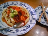 エビを炒めて、トマトソースを絡めて白ワインを入れるだけ