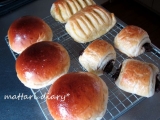 モニプラさんでこんにゃく粉を使ったパン作りのモニターに当選 だって、募集文句が『こんにゃく粉を使って、パンを焼いてみませんか?』だったんだもん!!マウスのボタンがめり込む勢いでクリックしちゃった 今回お試ししたのはガンヨボウショップさんの粉こんにゃく 届いた時、失礼ながら「あんまり量入ってないな」って思ったんだけど 実際に1回で使う量ってすんごく少ないんだよねこれだけあったらしばらくは楽しめそう まずは100ccのお水で小さじ1/2の粉こんにゃくをふやかしますよー 「1時間くらいかけてじっくり戻した方が良い」という情報をネットで目にしたので、じっくり時間をかけてね ジェル状になったこんにゃくはプルプル!!! でもね匂いがちょっと気になる感じ なんて言うのかなぁ??磯の匂いみたいな感じもするし、ちょっと苦い感じもある 試しに味見してみたら、味は匂いほど気にならないんだけどねぇ 最初はシンプルなテーブルロールにする予定だったんだけど、「味付きの生地にした方が匂いが気にならないかも??」という事で路線変更!! まずはコーヒー牛乳パン ちょっと表面が荒れちゃったけど、これは私のミスね 焼き上がったパンはかなりふわふわで超しっとり ちょっと感動するくらいのしっとり感!私が今まで焼いたパンの中で一番しっとりしてたかも このしっとり感ってこんにゃくの威力???ちょっと「すごい」と思っちゃったわ ちなみに焼成後は匂いも味も全く気にならなかったよ! コーヒー牛乳パンのレシピ 強力粉(イーグル) 135g きび砂糖 15g 塩 2g 無塩バター 10g 牛乳 70g 水で戻したこんにゃく 20g インスタントコーヒー 小1 ドライイースト 25g *材料をHBに投入して「生地作りコース」スタート1次発酵までおまかせ *分割&丸めて10分程度ベンチタイム *成形して2次発酵(152倍になるまで) *190度に予熱したオーブンで1518分程度焼成 続きましては黒糖パン こっちはちょっとモッチモチ感がアップしてたなー成形の違いかな?? レシピ自体はコーヒー牛乳パンとほぼ一緒 コーヒーみたいに苦味がある材料が入ってないから「もしかしたら匂いが気になるかも??」と心配したんだけど、こちらも全く問題ナシ!でした 黒糖パンのレシピ 強力粉(イーグル) 135g 粉状の黒砂糖 15g 塩 2g 無塩バター 10g 牛乳 70g 水で戻したこんにゃく 20g ドライイースト 25g *材料をHBに投入して「生地作りコース」スタート1次発酵までおまかせ *分割&丸めて10分程度ベンチタイム *丸め直して2次発酵(152倍になるまで) *強力粉をふり(分量外)、キッチンバサミで真ん中をチョッキン *190度に予熱したオーブンで1518分程度焼成 もうちょっと黒糖を足してもいいかも 朝ごはんにはちょうどいい甘さだけど、黒糖味がもうすこし欲しいな やっとモラセスも買った事だし(ずっと砂糖とか蜂蜜を使ってたの)、今度はベーグルに入れて焼いてみようかなー かなりモッチリベーグルになってくれるんじゃないかと、勝手に期待 ガンヨボウショップファンサイト応援中 続きを見る ['close']