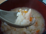 株式会社アクリフーズから新発売のスープごはんは 4種あるんだけど、その中の一つ 「参鶏湯風クッパ」を食べてみました これ、1食ずつのパウチの冷凍品で お水を加えてレンジかお鍋で加熱するだけで 美味しい参鶏湯風クッパが出来上がるの 常備して置けるしお手軽なので主婦の一人ランチに ぴったりです ↑つくりかたです今回はお鍋で作ります お鍋にあけたところ 冷凍ピラフみたいです ごはんが一粒ずつパラパラになっています ここにお水を200cc加え、中火で5分加熱 出来上がりました 思いのほかたっぷり量でした (器はうどん用の丼です) ごはんの形はしっかりしていてそれで柔らかく 人参、鶏肉の具材も割と大きめなので 食べごたえ十分です 少し生姜が効いているようでピリリと 味が引き締まり、美味しいです そして体もポカポカしてきます これだけで十分お腹いっぱいになります これは受験生のお夜食にもいいかも 味は4種あるので次はほかの味も試してみたいです お弁当のおかずならアクリフーズファンサイト参加中 続きを見る ['close']