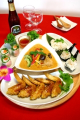 今日は【K+dep(ケデップ)】回転プレートセットを使ってタイパーティー!!メニューはゴーヤのタイ風レッドカレーフライパンで簡単手羽先のBBQキチン生春巻き米麺&ライス盛り付けるだけでおしゃれに見えちゃうので嬉しいですね(^^♪先日のパーティー記事で【K+dep(ケデップ)】回転プレートセットのモニターとしていただきました!!ずっと気になっていたセットなので嬉しいヽ(^o^)丿深めのボールと3枚のおしゃれな形のお皿、回転ボードのセット!!それぞれ別々の器としても使えるし回転ボードに色々な器でコーディネートも自由に出来るのでとっても便利!!白なのでお料理も映えるしどんなコーディネートにも合わせられるのが嬉しいです深めのボールにはメインディッシュのゴーヤのタイ風レッドカレー!!周りの3枚のお皿は笹の葉を敷いてライス&レンゲに米麺!生春巻きを切って並べてガラスの器にスイートチリソースのタレを添えてタイ風ガイヤーンを並べてパクチーを添えて3枚のお皿も少し深みがあるのでガイヤーンなどのタレをかけても漏れ出さずいい感じ(^^♪今回はタイ料理大好き家族で囲み楽しみました!!息子はガイヤーンをかぶりつき、米麺をめんつゆで食べました面白がってビュンビュン回転させてましたよ(^_^;)やめて次は何を作ろうかわくわくパーティーがますます楽しみになりました!!K+dep(ケデップ)さんステキな回転プレートセットありがとうございます我が家で大活躍しそうです(^^♪K+dep(ケデップ)ファンサイトファンサイト応援中ランキングに登録しています1日1回応援クリックしていただけると嬉しいです 再新の励みになります応援ありがとうございました(^^♪