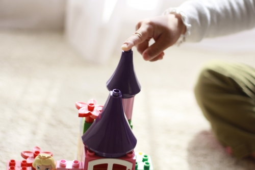 娘がつくったブロックのお城に三角の屋根を見つけました(*^^*)