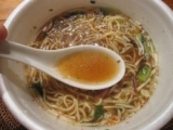 ヤマダイ の 凄麺シリーズ 「横浜発祥サンマーメン」 をお試し中 横浜のご当地ラーメンとして名高い「生碼麺(サンマー麺)」もちろん、さんま の麺などではなく、細麺をつかった、塩もしくは醤油味のスープのラーメンの上に、歯ごたえが残る程度に炒めたモヤシを片栗粉を溶いたあんで絡めて乗せた麺料理戦前に中華街で発祥したものらしいそれをカップラーメンで再現したものが、↓ さすがはノンフライ麺 カロリーは意外と低めの310kcal 中の薬味とたれを取り出し、 お湯を注いで待つこと約4分 ツルツルしこしこの細めの麺によく絡む、とろみのあるお醤油ベースのスープゴマ油や魚介エキスなど、中華の旨みがギュギュッと濃縮 うん、まいう♪商品のくわしいことは⇒ 凄麺 横浜発祥 サンマーメンニュータッチのファンサイトファンサイト応援中1日1回ポチっとな ↓ 続きを見る