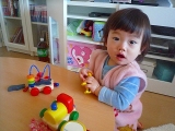 最近はサファリバスのアニマルたちを、この車の隙間に乗せるのが好き指でそっとそっと、狭いところに乗せてあげるつ:できたっ!! (自分でパチパチ、拍手でたたえる)キリンも??つ:首が長くてはみ出ちゃうのキリンはムリだったみたい代わりに水筒を乗せて、絵本コーナーへ 続きを見る ['close']