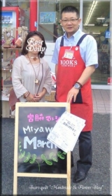 日付が変わっちゃったから昨日の事だけど朝から、お出かけした所は宮脇書店大阪柏原店で開催された第1回「MIYAWAKIMARCHE」色んな分野のショップが並んぶイベントで手作り雑貨ショップ「ローズドイリー」も参加したのおみせ番、ローズドイリーちゃんが一人じゃ大変だからちょこっと、お手伝いねうふ♪( ̄ー ̄)v今回は、デジカメを持って行かなかったので携帯画像ですぅ^_^;第1回目の今回はイベント告知がほとんど無かったににも関わらずそして、真夏のような日差しにもかかわらず沢山のお客様に来ていただけました アリガトォ次回、11月7日開催の「宮脇マルシェ」は新聞の折り込みチラシ等が入るそうなのでもっと大忙しになるかな^^無事にイベントも終了して今回、大変お世話になった、宮脇書店の萩原店長さんとローズドイリーちゃんとで記念撮影ね!萩原店長さんは、顔だしOKだけど !ローズドイリーちゃんは、顔だしNG だって! ・(´艸`)・・ そうそう販売コーナーの後ろにあった自動販売機で気になる物を見つけたの「すいかソーダー」どんな味だか、気になったけどローズドイリーちゃんも、私も買わなかったわ( ´艸`)クスクス飲んだ事あるかた、いるかしら???*宮脇書店 大阪柏原店 ホームページは→ http//wwwehonnejp/bec/SHOP65651 お得情報もゲットできるツイッターは→ http//twittercom/miyawakisyoten いつも応援をありがとう 今日も、応援クリックをお願いね にほんブログ村 続きを見る ['close']