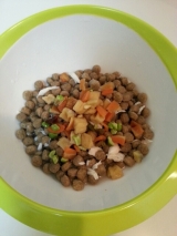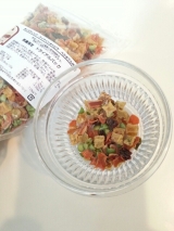 ホリスティックケイナインキャビアさんの乾燥ベジタブルを食べてみました前回は七面鳥の缶詰をモニターさせていただきとても気に入った七面鳥、お肉だけてなくて野菜もプラスしたいのでと便利な乾燥野菜をお試しさせていただきました良質の原材料だけを使用し、着色料保存料不使用のベジタブルMix乾燥緑エンドウマメ、乾燥キャロット、乾燥ヤムイモ、乾燥ピーマン/アカトウガラシ、乾燥パンプキン、乾燥セロリ、乾燥トマト、乾燥ズッキーニ、乾燥ブロッコリー、乾燥アップル、乾燥クランベリー、乾燥ガーリック、乾燥パセリ、乾燥ビートアカトウガラシ、セロリに、パセリなどなどまだ、食べたことない野菜も入っていますストルバイトができやすいので泌尿器系によいクランベリーが入ってるのがよさそうそして、ガーリック、犬には食べさせてはいけないと書かれていたり食べた方がいいと書いてあったりする本があるけれどどっちにしても、にんにくパワーで、これ以上元気になっては困ると食べさせたことがないウィンディ510kgで10g以下なのでウィンディ 11か月 78kg約4gで1回分にしました4gはこれぐらい、1520分ほどお水かぬるま湯で戻してドッグフード、または手作り食に混ぜて15分後水を切って、いつものカリカリフードにささみとささみを茹でたスープをかけて上にトッピングしましたおすわりして待つウィンディ、いつものごはんだとヨシ!といってもずとマテしてるウィンディ、(違う美味しいものにしてと無言のアピール)ヨシ!でトッピングから食べ始めましたすごいスピードで食べて、完食!なくなってもぺロぺロするほど美味しかったようですごちそうさまでした♪わんちゃんの好きな野菜ばかり入ってるんでしょうか?セロリもパセリも食べるんだと意外な発見でした!ウィンディは、カリカリフードだけだと食べないのでまとめて作った、ささみのスープかゼリー(ゼラチンか寒天)に人間のご飯を作るついでに、犬が食べれる野菜を入れていたけれど、毎回何をいれようか悩んでいたので、乾燥野菜があるととても便利繊維質豊富な硬い野菜が多いので食物繊維摂取にもよさそうな野菜ばかりでしたよ人間とのバランスは違うけれど肉食基本の雑食の犬にも野菜は必要ですよねK9キャビアルポ モニプラ事業部ファンサイト参加中 続きを見る ['close']