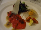 春はお別れの季節ですね私もしばらくの間お別れする人達がいます盛大に送別会をしてきましたよま、5月には会えるんですけどね笑可愛いお皿最近こういう風にたたまれているナプキンってあんまり見ないですねさて、本日のコースは"LO CHEF BALDI VIRGILIO CONSIGLIA"30周年記念のプレミアムディナーだってどんなでしょうね?まずはサラダからバーニャカウダ風なソースがいいですねもっとたっぷりつけたい感じでした前菜が2種類ものってお得な感じ笑赤いのは馬肉のカルパッチョです黒トリュフソース本当は牛さんだったんですが、わがまま言って変えていただきましたそして右は真鯛のマリネオレンジがのっていて爽やかですパスタも春らしいですよーホタテと菜の花とカラスミトンナレッリというパスタでしたこれ美味しかったですパスタの次はお魚才巻海老のソテーですなんと、ラルドを身に纏っていますよーこれ、美味しかった絶妙の塩加減もっと食べたかったです笑お口直しのシャーベットをいただいて…お肉ちゃーんトリュフが乗っていますよしかもソースはフォアグラこの黒トリュフはノルチャ産だそうですってそれどこ??やわらかーくて焼き加減も抜群な牛フィレちゃんでしたうん、前菜を桜肉にかえてもらって正解だったかもそしてデザートの前にチーズワゴン登場美味しそうなチーズがたくさんありました私がお願いしたのは、灰をかぶったエポワス、桜の葉っぱを巻いたチーズ、白カビなんだけど中は青カビという面白いもの、そしてトリュフが練りこんであるハードチーズところが、来たお皿にはトリュフの代わりにゴルゴンゾーラがよりによってトリュフのチーズがないなんて!と慌ててお店の人を呼んでトリュフチーズを切っていただきました笑ゴルゴンゾーラ、捨てちゃうの勿体ないから足してくださいってふふ、お願いして良かった!トリュフの香りがふわーっとしてとーっても美味しいチーズでしたここでかなりお腹満足だったのですが、忘れてましたデザートしかもこれもワゴンで好きなものを好きなだけお願いできるんですどれも美味しそうでしょ?私はオペラとヨーグルトと柚子のケーキ(白くて中が赤い分)のふたつホントはピスタチオと、シブーストも気になったんだけど一口ずつ交換することにしてふたつで我慢シブーストが一番美味しかったコーヒーのおともクッキーとっても美味しかったです大満足でお店を後にしたのですが、その後、まさかおうちに帰れなくなるとは思ってもいませんでしたあ、いや、楽しかったんですけどね笑無理なくスリム★1食置き換えダイエット「ソイプロテインフォーダイエット」15包入 続きを見る ['close']