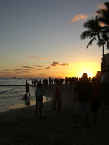 真夏のハワイで撮ったヒトコマですずっとここに居たいと思ってしまう、美しい夕焼けと海でした