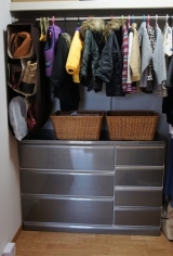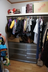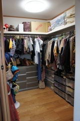 今回は、内覧会でもまだ紹介が出来ていなかった 衣裳部屋について書こうと思います この写真は、キッチン側から撮ったもの 短い廊下を渡ると、洗面脱衣場に続くようになっています その廊下の左側に衣裳部屋、 右側には勝手口と洗濯機置き場があります この洗濯機置き場の位置、 キッチン側に扉がないので、 最初の頃は洗濯機の音が気になって気になって でもね、もう慣れました(笑) 慣れってこわいもんです(^^;) 衣裳部屋の扉は、 普通のクローゼットの扉になっています それでは、オプン♪ 開けてみると、こんな感じ 3畳ちょいの大きさだったと思いますが、すでにいっぱい 本当は、引っ越しの際に 衣装ケースを白いものに新調して 統一させるのが夢だったんだけど… まだ使えるしなと思うと、踏ん切りがつかず、 結局、前のアパートで使っていたものをそのまま使っています(>__ 続きを見る